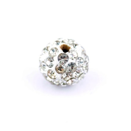 Bola con cristales incrustados Swarovski de 10 milímetros. Taladro 1.5 milímetros. Color crystal. La bolsa contiene 1 unidad