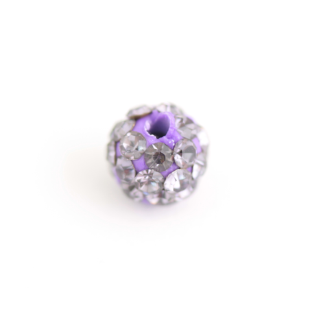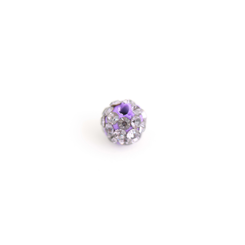 Bola de 6 mm. con strass morado. Taladro interior de 1.5 mm. La bolsa contiene 1 unidad.