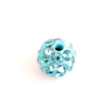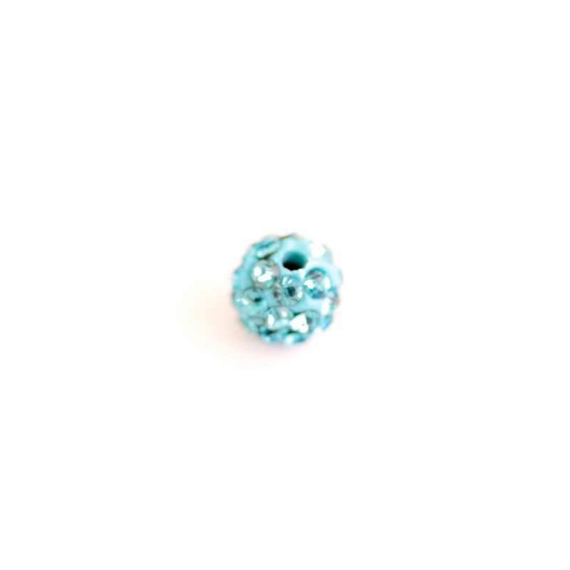 Bola de 6 mm. con strass aquamarine. Taladro interior de 1.5 mm. La bolsa contiene 1 unidad.