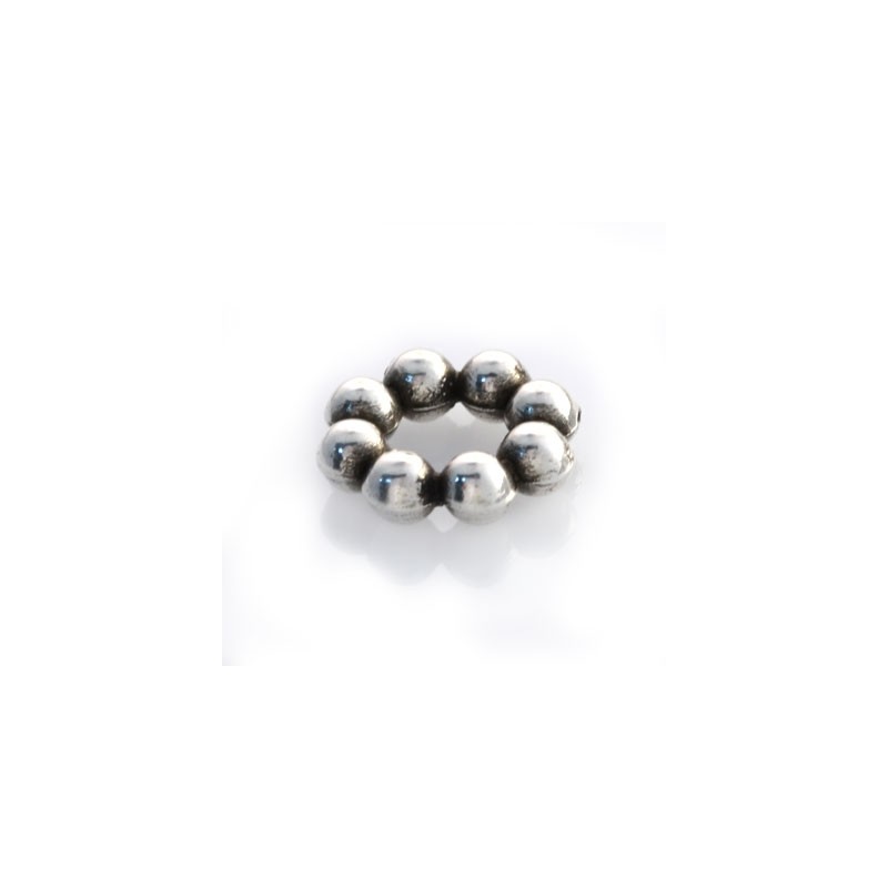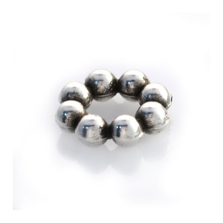 Entrepieza anilla tormada por bolas en zamak con baño plata. Diámetro exterior 9 mm. Diámetro interior 3 mm.