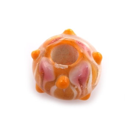 Cuenta cristal murano 14 x 8 mm para cordón 5 mm. Color naranja y rosa.