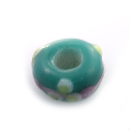 Cuenta cristal murano 14 x 8 mm para cordón 5 mm. Verde con motivo