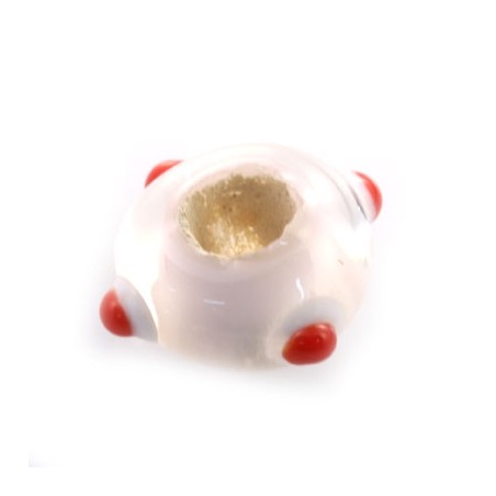 Cuenta cristal murano 13 x 8 mm para cordón 5 mm. Color rosa palo con puntos bolas rojas.