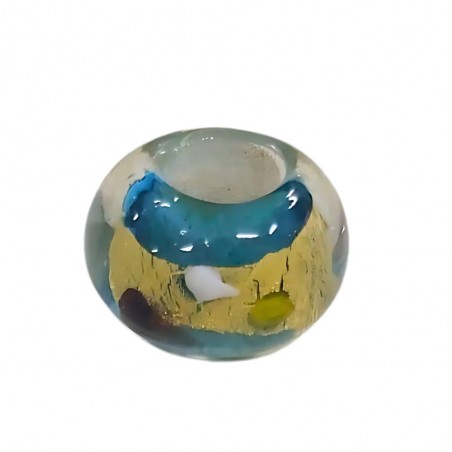 Cuenta cristal murano 14 x 8 mm para cordón 5 mm.Azul con puntos
