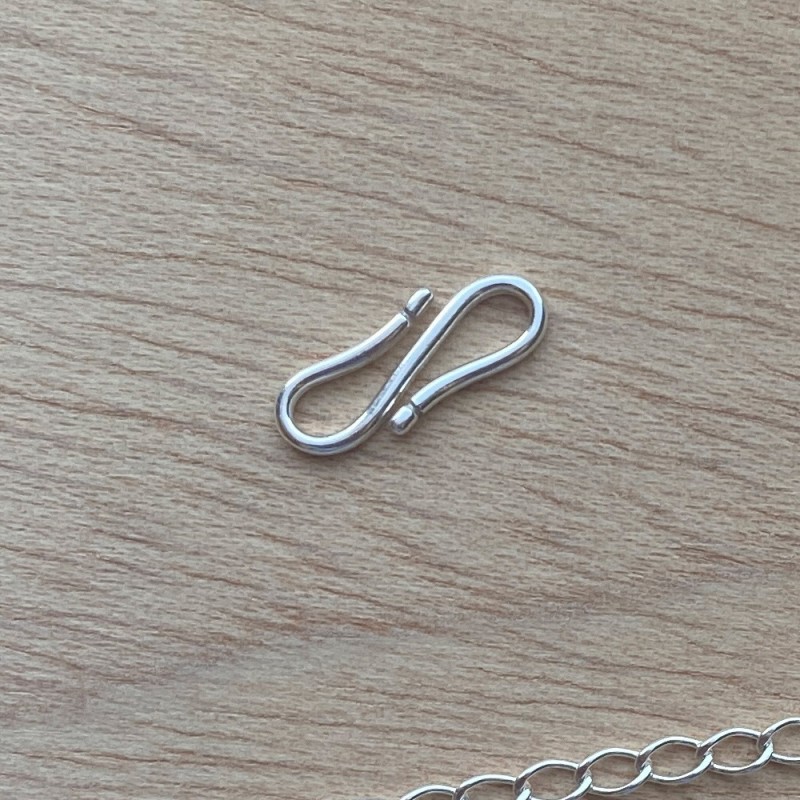 Este cierre también vale para cerrar cadenas y funciona muy bien a la hora de realizar tobilleras puesto que el enganche se introduce en cada extremo de la cadena y se amolda muy bien al tobillo.