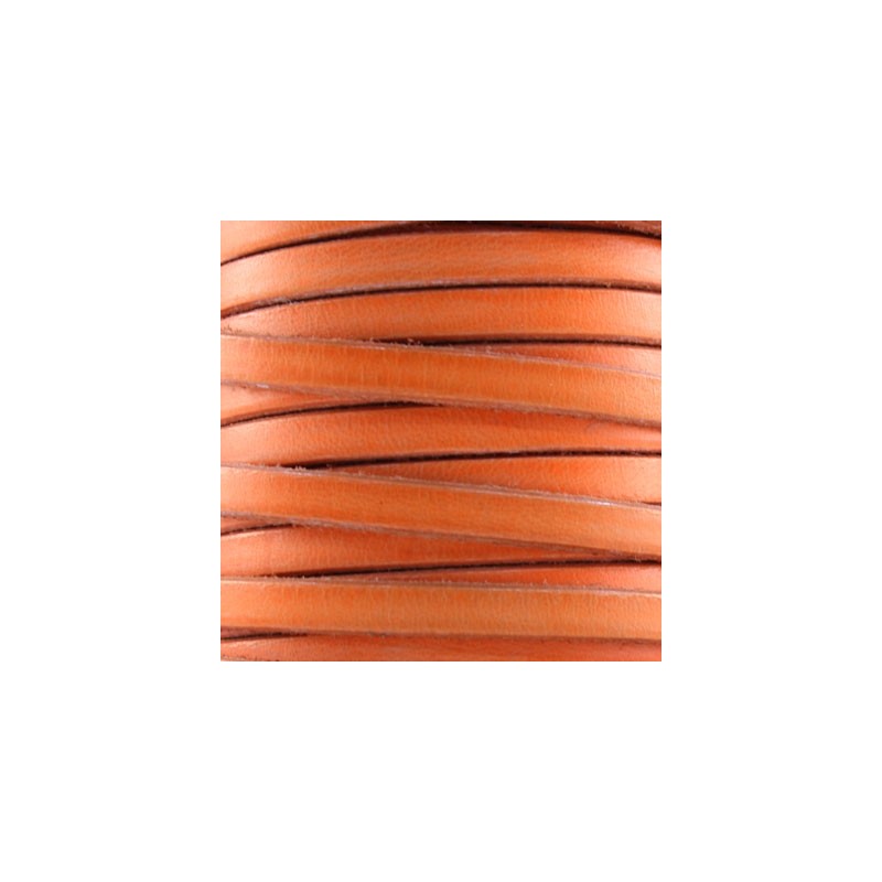 - Cuero plano de 5mm de ancho y 2 mm de grosor en color Naranja flúor. Fabricado en España.