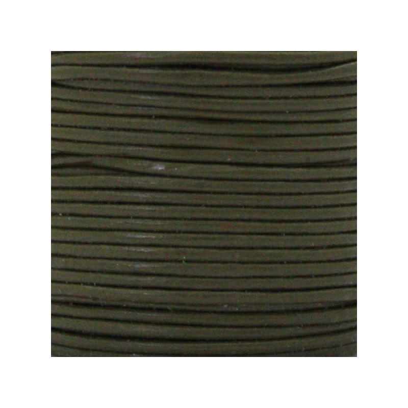 - Cuero redondo de 1 mm de grosor en color kaki. Este cuero es muy suave y flexible siendo ideal para hacer nudos o bien para llevar pulseras y colgantes muy finos.