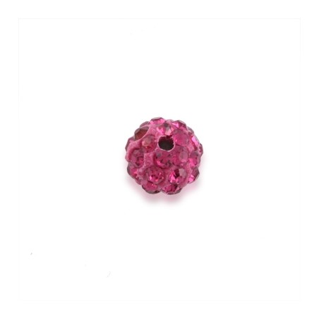 - Bola de 8 milímetros con strass en color fucsia. - Taladro 1.5 milímetros. - El precio es por unidad.