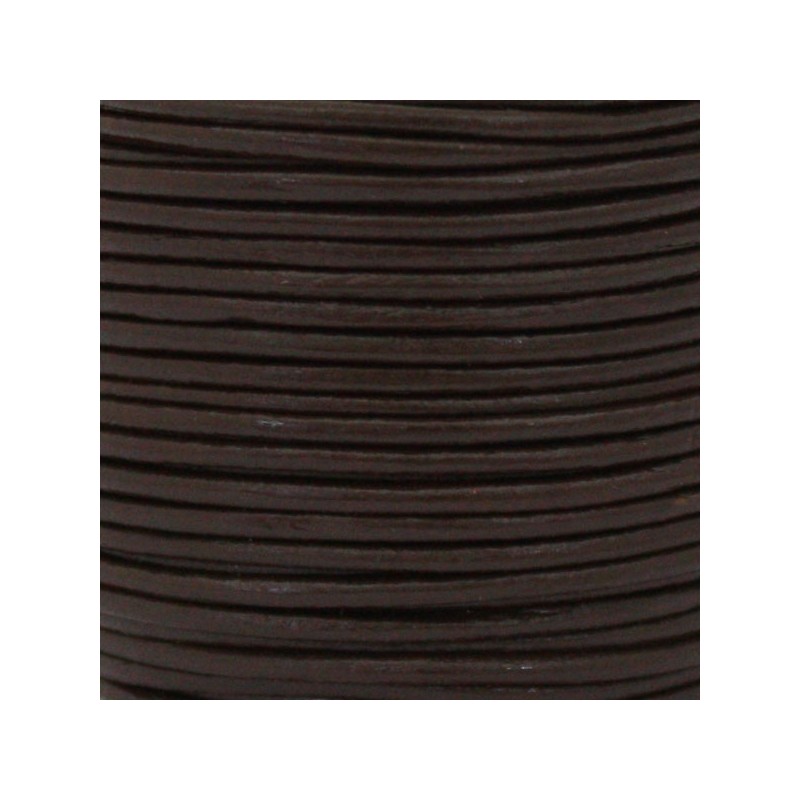 - Cuero redondo de 1 mm de grosor en color marrón chocolate. Este cuero es muy suave y flexible siendo ideal para hacer nudos o bien para llevar pulseras y colgantes muy finos.