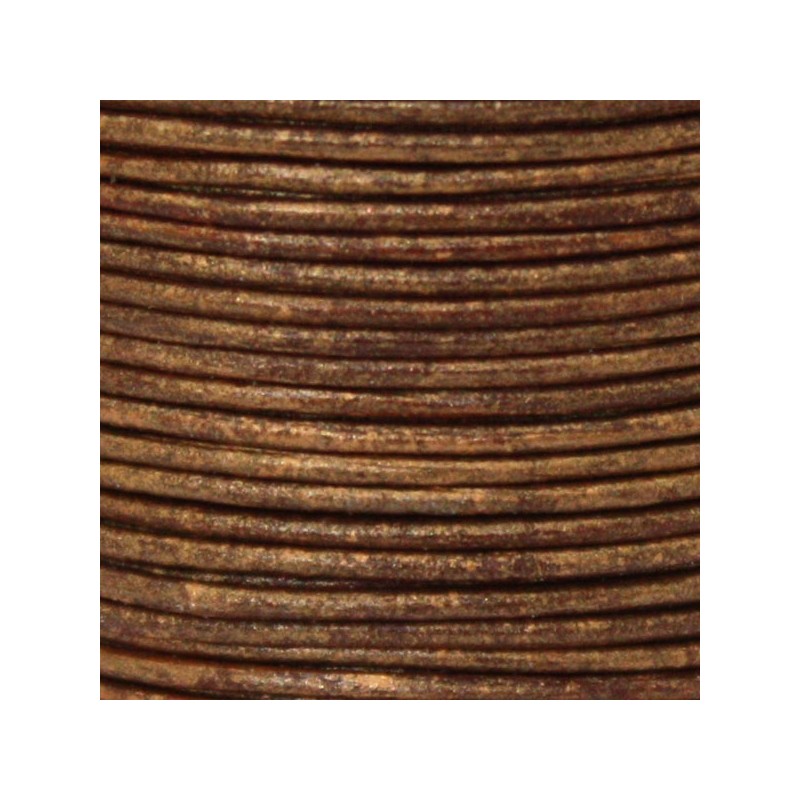 - Cuero redondo de 1 mm de grosor en color cobre. Este cuero es muy suave y flexible siendo ideal para hacer nudos o bien para llevar pulseras y colgantes muy finos.