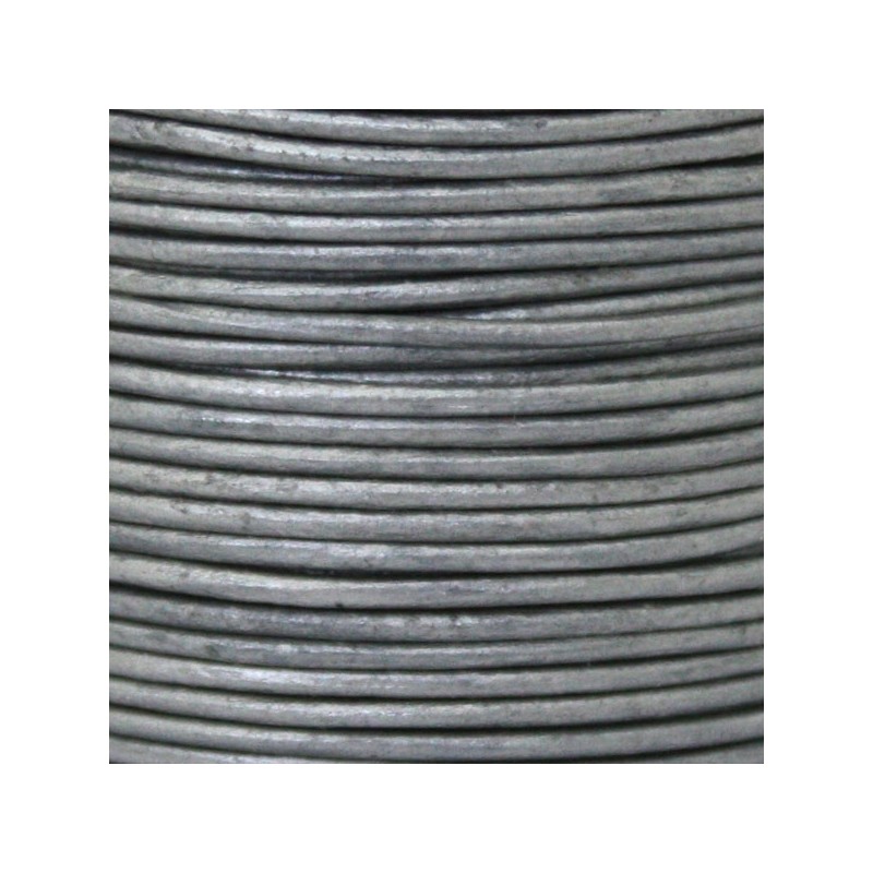 - Cuero redondo de 1,5 mm de grosor en color plata. Este cuero es muy suave y flexible siendo ideal para hacer nudos o bien para llevar pulseras y colgantes finos.