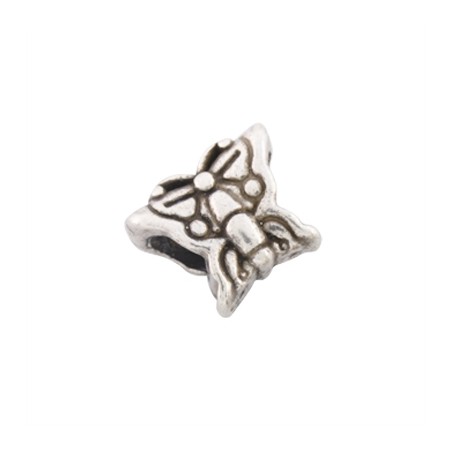 - Entrepieza mariposa en zamak con baño de plata. - El tamaño es de12x11 milímetros y tiene un taladro de 4.5 milímetros. - El precio es por unidad.