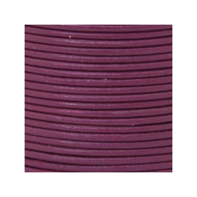 - Cuero redondo de 1 mm de grosor en color fuchsia. Este cuero es muy suave y flexible siendo ideal para hacer nudos o bien para llevar pulseras y colgantes muy finos.