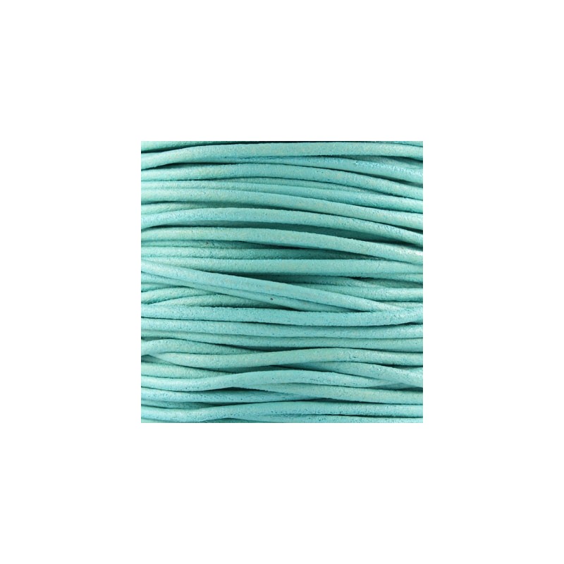 - Cuero redondo de 2 mm de grosor en color verde turquesa, fabricado en España. Este cuero es de alta calidad y es ideal para hacer pulseras, colgantes y nudos como el corredizo.