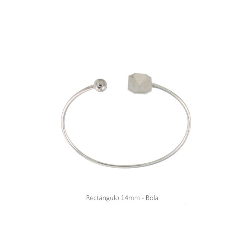 Pulsera en plata de ley 925 con bisel rectángulo de 10x14mm especialmente diseñado para cristales de Swarovski modelo rectángulo de 14mm. Cuenta con una bola de 4mm en el otro lateral.
