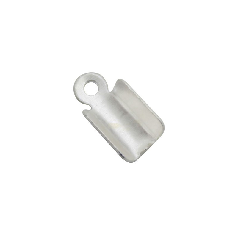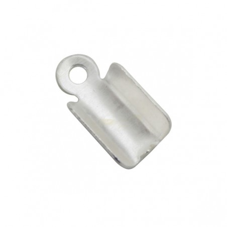 - Terminal grapa con anilla de latón en color plateado. - El tamaño interior es de 3,5 milímetros. - El precio es por bolsa y la bolsa contiene 10 unidades.
