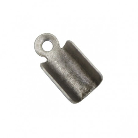 - Terminal grapa con anilla de latón en color plata vieja. - El tamaño interior es de 3,5 milímetros. - El precio es por bolsa y la bolsa contiene 10 unidades.