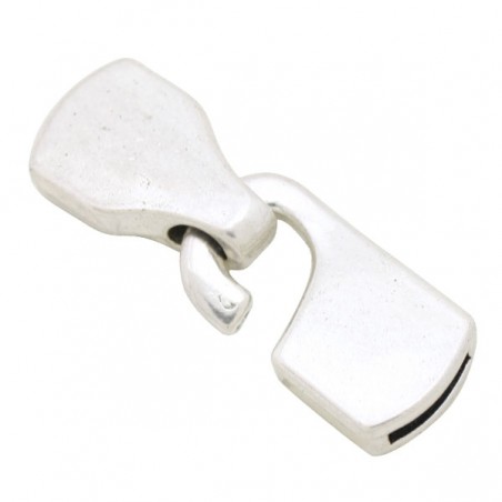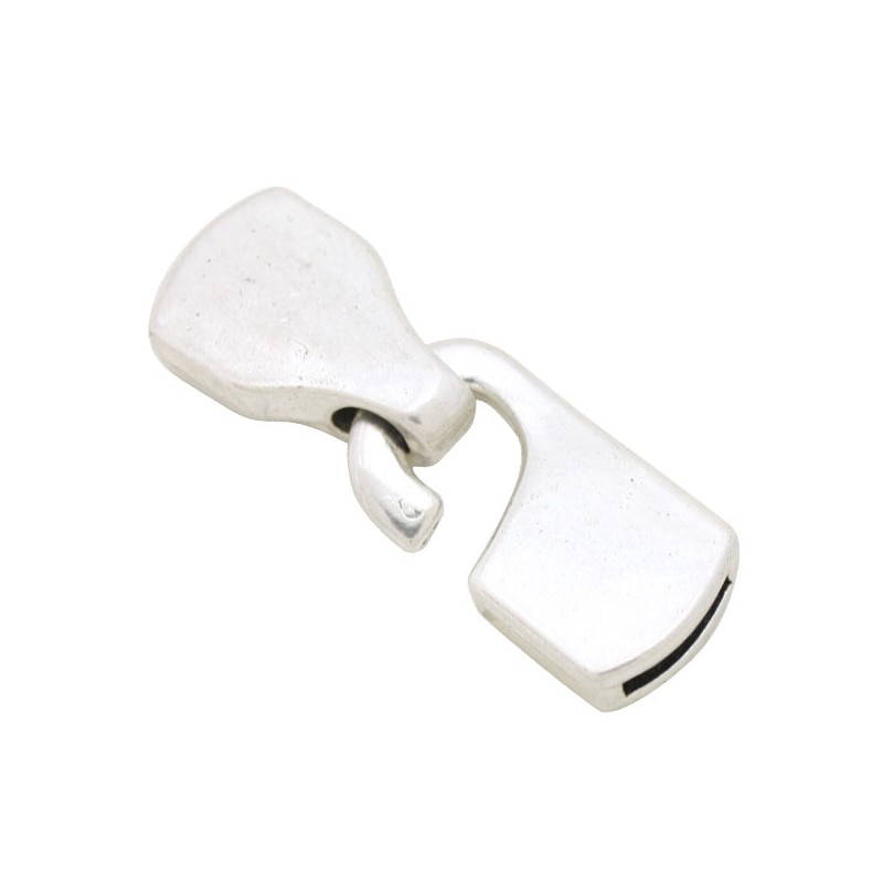 - Cierre gancho plano en zamak con baño de plata. - El tamaño del agujero es de 10x2,5 milímetros. - El precio es por unidad.