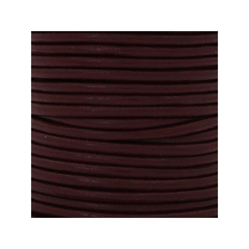 - Cuero redondo de 1,5 mm de grosor en color granate. Este cuero es muy suave y flexible siendo ideal para hacer nudos o bien para llevar pulseras y colgantes finos.