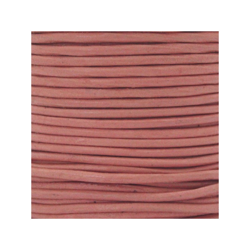 - Cuero redondo de 1 mm de grosor en color rosa bebé. Este cuero es muy suave y flexible siendo ideal para hacer nudos o bien para llevar pulseras y colgantes muy finos.