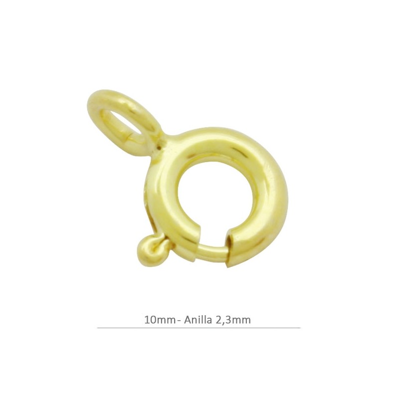 - Cierre reasa en plata de ley con baño de oro. - El tamaño es del cierre es de 10 milímetros y el de la anilla es de 2,3 milímetros. - El precio es por bolsa y la bolsa incluye una unidades.