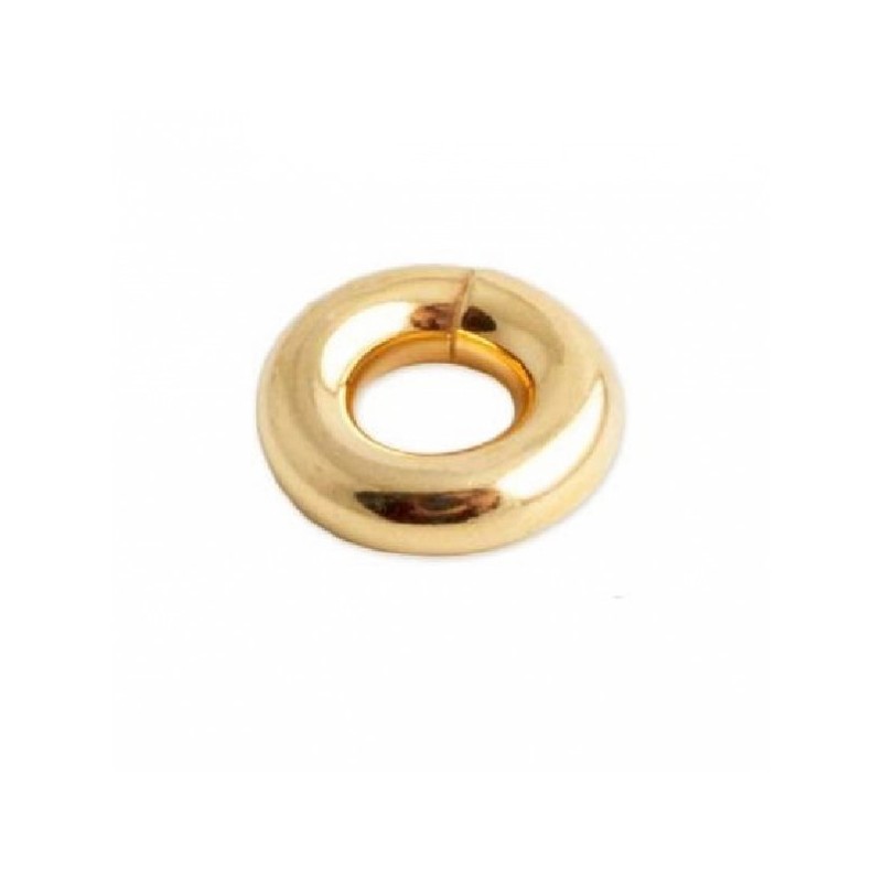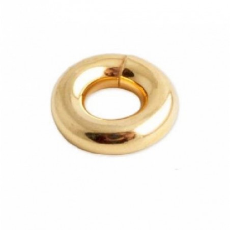 Entrepieza anilla tubo tamaño grande,de plata con un baño de oro. La bolsa contiene 2 unidades y el tubo es de 2,5 mm. El diámetro interior es de 4 mm. y el diámetro exterior es de 9 mm.