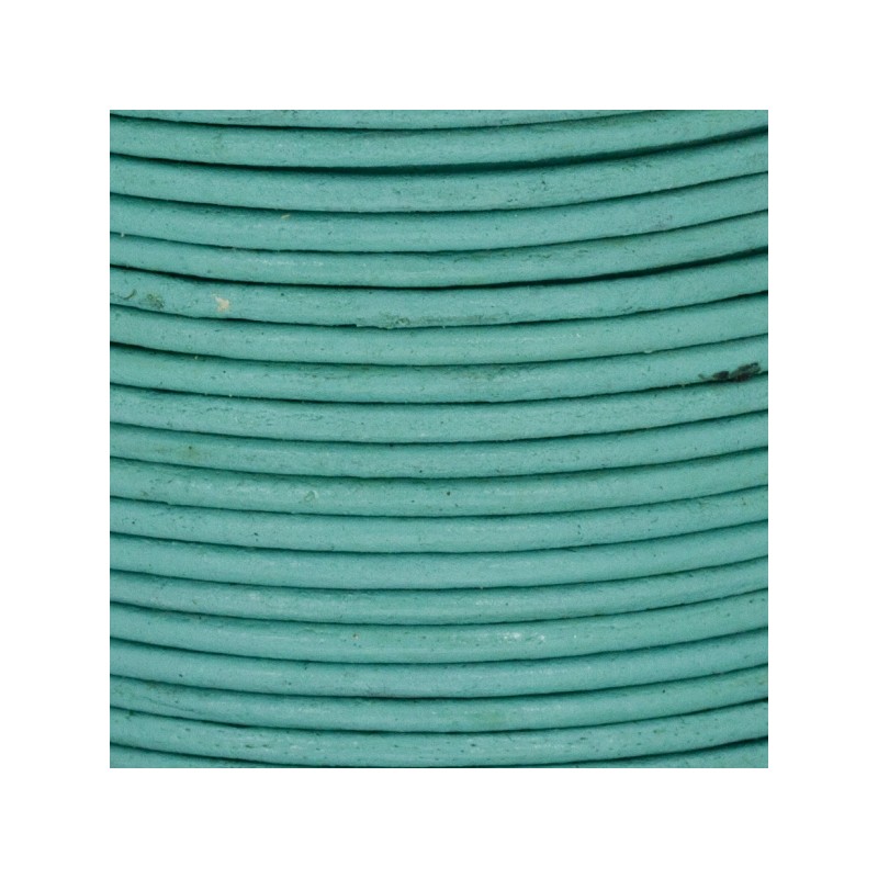 - Cuero redondo de 1,5 mm de grosor en color ocean. Este cuero es muy suave y flexible siendo ideal para hacer nudos o bien para llevar pulseras y colgantes finos.