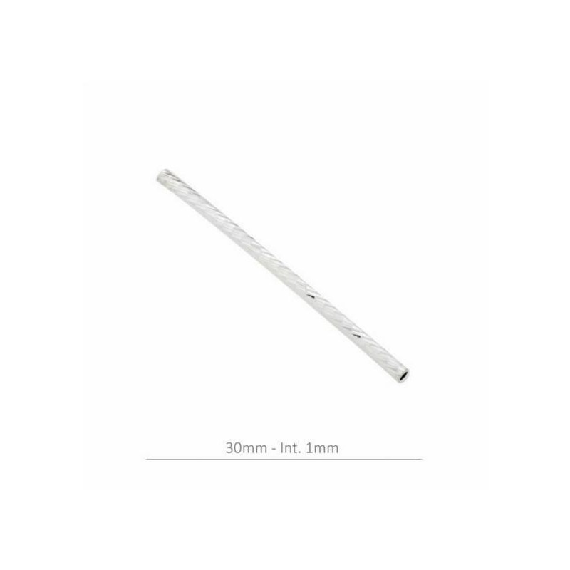 Tubo redondo rayado de plata de ley. La bolsa contiene 2 unidades. Largo 30 mm. Interior 1 mm.