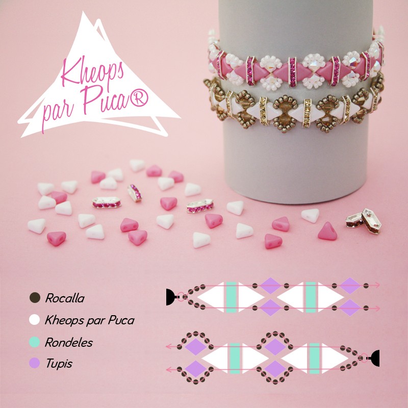 Las cuentas Kheops par puca son cuentas en forma de triángulo de 6 mm con dos agujeros paralelos pasados en el medio de la cuenta. Con ellas puedes crear preciosas composiciones tanto como para pulsera, pendientes y colgantes. Se adaptan muy bien a muchos proyectos beading.
