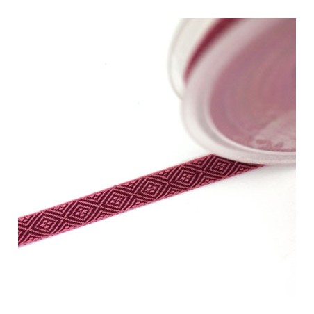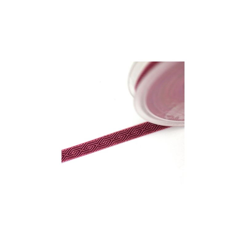 Cinta Lame 10 mm. Rosa oscuro con motivo.