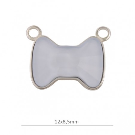 - Colgante lazo en plata de ley con cristal de Swarovski. - El cristal viene sin pegar a la pieza. - El tamaño del cristal es de 12x8,5 milímetros. - El precio es por unidad.