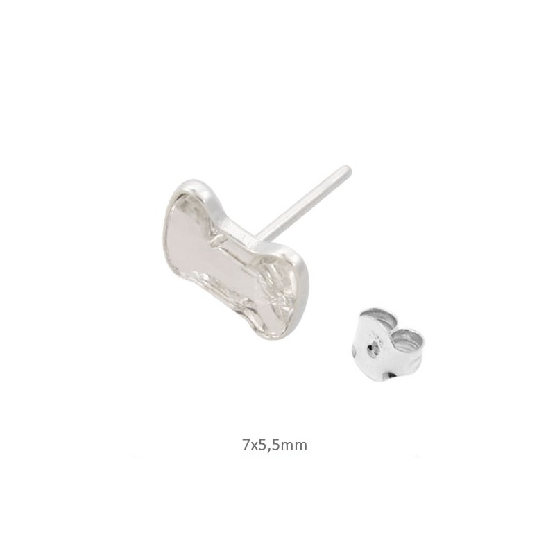 - Pendientes lazo en plata de ley con cristal de Swarovski. - Los cristales vienen sin pegar a la pieza. - El tamaño es de 7x5,5 milímetros. - El precio es por bolsa y la bolsa incluye dos unidades.