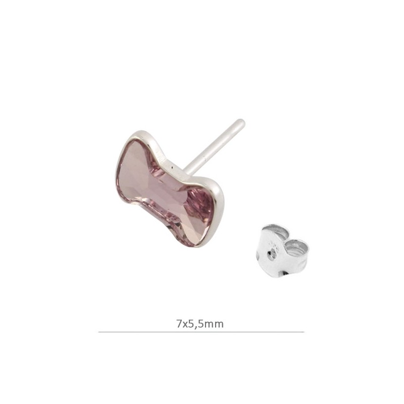 - Pendientes lazo en plata de ley con cristal de Swarovski. - Los cristales vienen sin pegar a la pieza. - El tamaño es de 7x5,5 milímetros. - El precio es por bolsa y la bolsa incluye dos unidades.