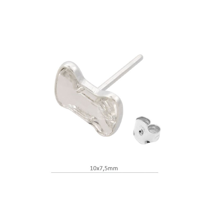 - Pendientes lazo en plata de ley con cristal de Swarovski. - Los cristales vienen sin pegar a la pieza. - El tamaño es de 10x7,5 milímetros. - El precio es por bolsa y la bolsa incluye dos unidades.