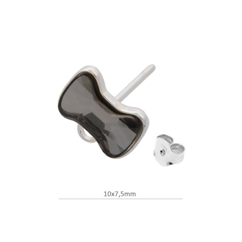 - Pendientes lazo con anilla en plata de ley con cristal de Swarovski. - Los cristales vienen sin pegar a la pieza. - El tamaño es de 10x7,5 milímetros. - El precio es por bolsa y la bolsa incluye dos unidades.
