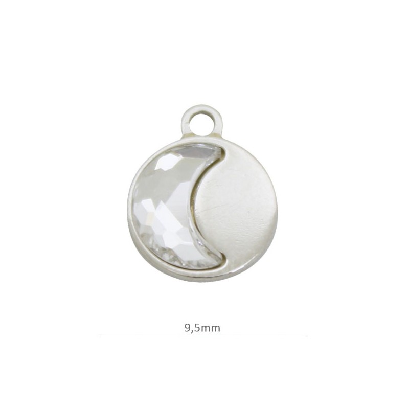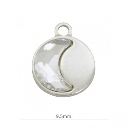 - Colgante bisel luna en plata con cristal de Swarovski. - El tamaño es de 9,5 milímetros. - El precio es por unidad.
