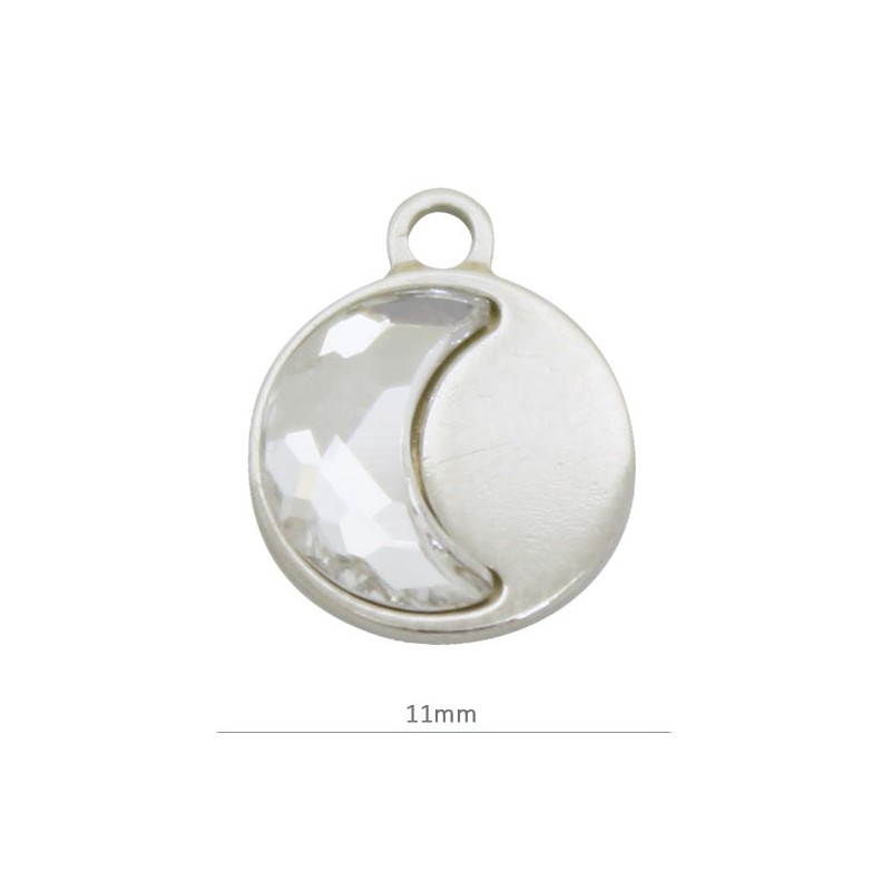 - Colgante bisel luna en plata con cristal de Swarovski. - El tamaño es de 9,5 milímetros. - El precio es por unidad.