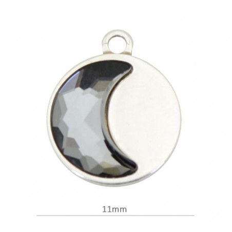 Colgante disco 11mm-bisel luna 10x7mm. Crystal Silver Night