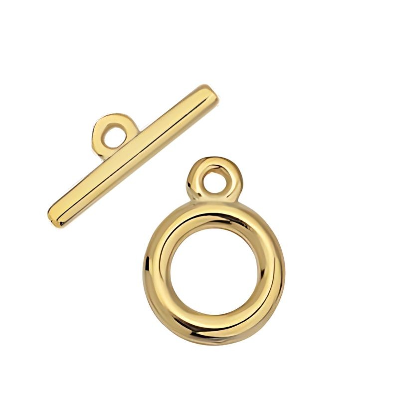 Cierre marinero liso en zamak con baño de oro 24k. El tamaño de la anilla es de 14x19mm y el del palito de 21x7mm.