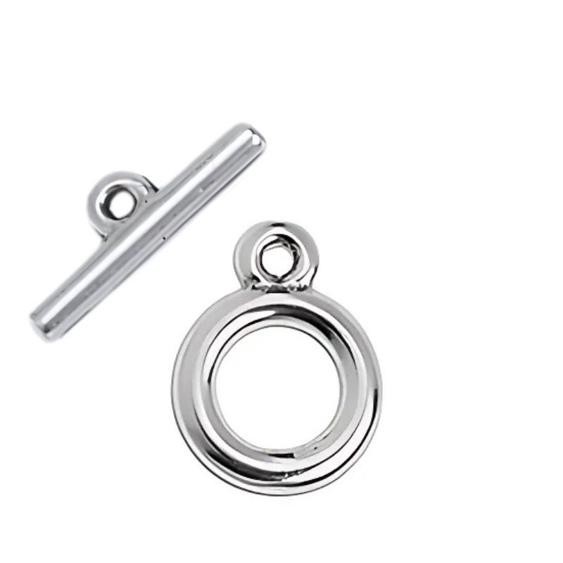 Cierre marinero liso en zamak con baño de plata. El tamaño de la anilla es de 14x19mm y el del palito de 21x7mm.