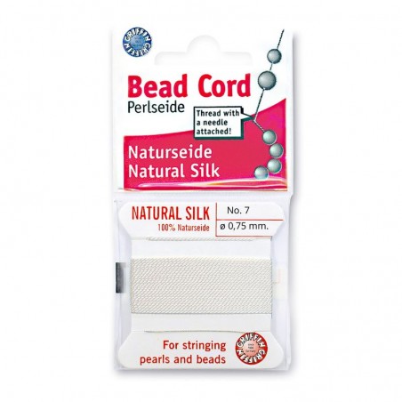 Hilo de seda en color blanco y grosor 0,75mm para enfilar perlas.