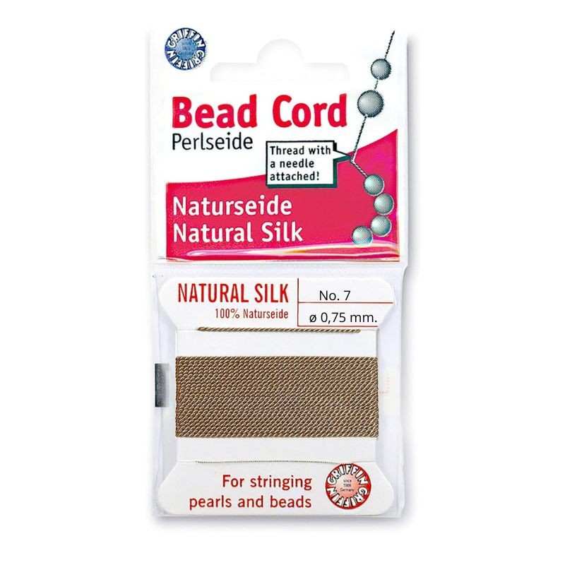 Hilo de seda para perlas + aguja. Beige 0,75mm.