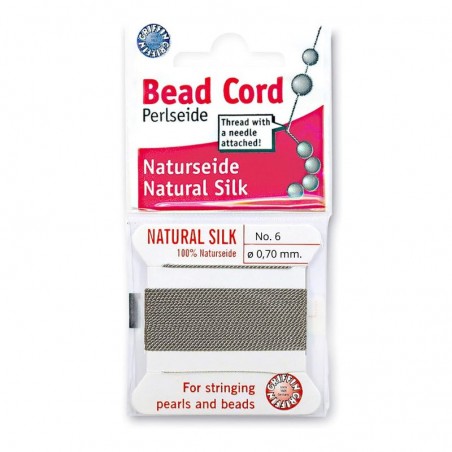 Hilo de seda para perlas + aguja. Gris 0,70mm.