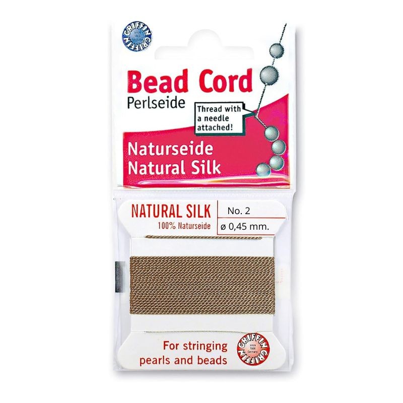Hilo de seda en color beige y grosor 0,45 mm para enfilar perlas.