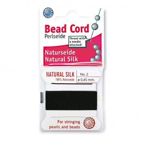Hilo de seda para perlas + aguja. Negro 0,45 mm.