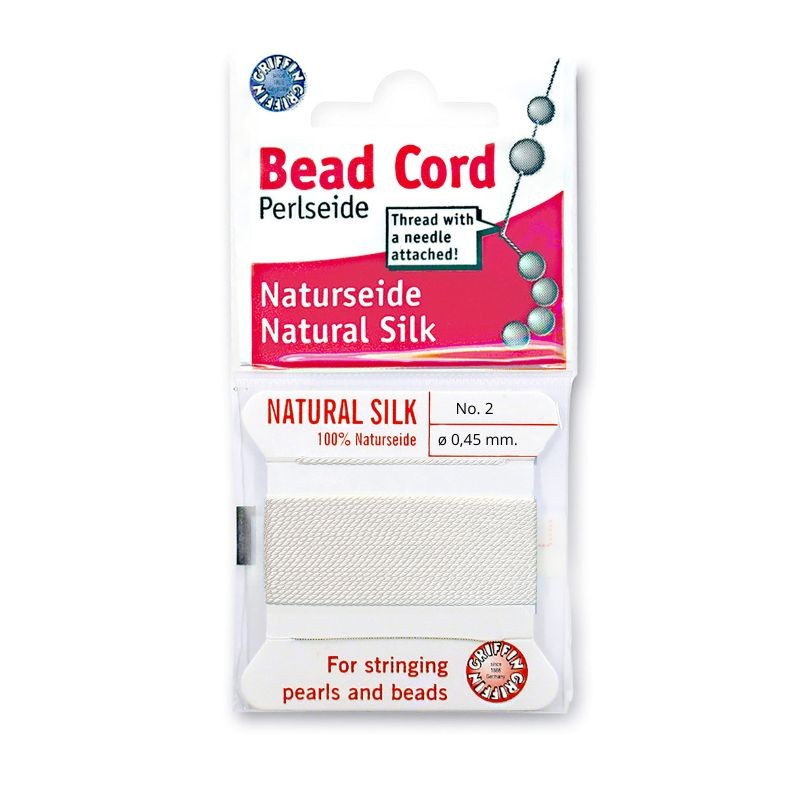 Hilo de seda en color blanco y grosor 0,45 mm para enfilar perlas.