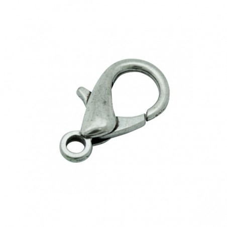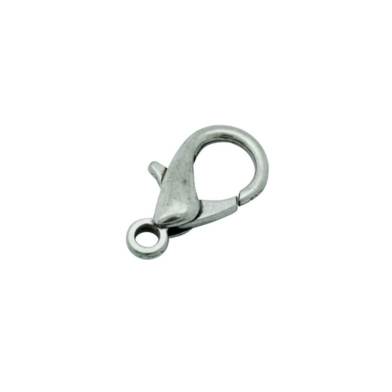 - Mosquetón de latón en color plata. - El tamaño es de 12 milímetros y tiene un taladro aproximado de 1 milímetro. - El precio es por bolsa y la bolsa contiene 10 unidades.