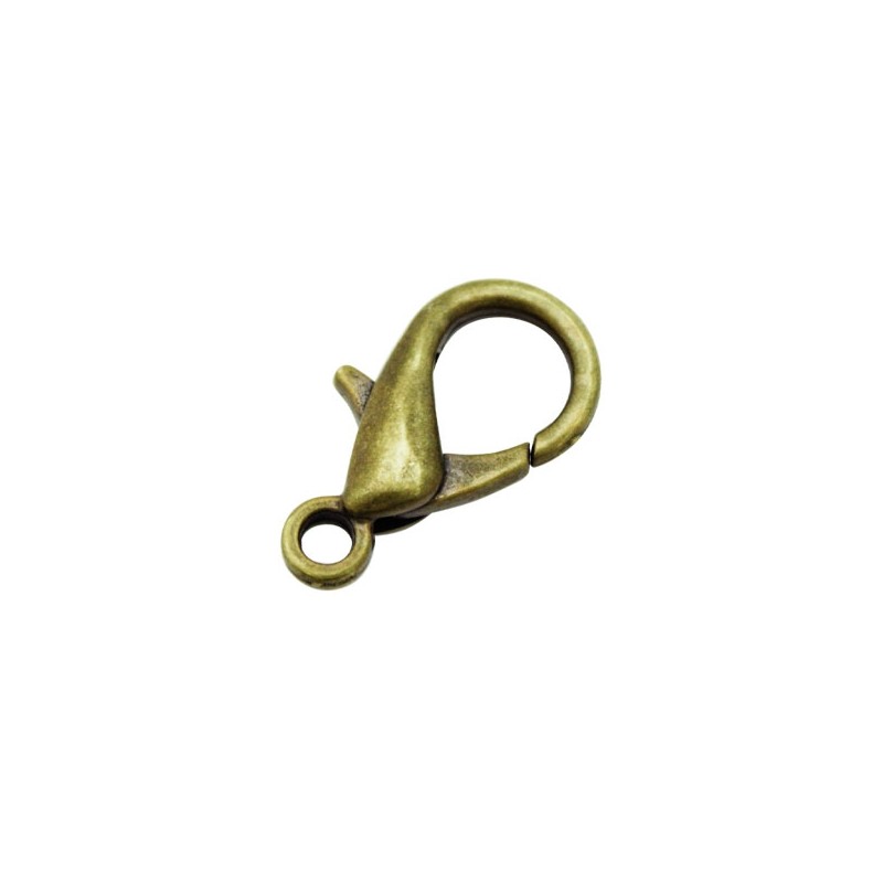 - Mosquetón de latón en color oro viejo. - El tamaño es de 12 milímetros y tiene un taladro aproximado de 1 milímetro. - El precio es por bolsa y la bolsa contiene 10 unidades.