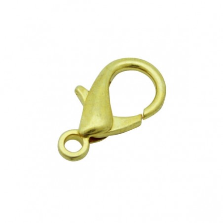 - Mosquetón de latón en color dorado. - El tamaño es de 12 milímetros y tiene un taladro aproximado de 1 milímetro. - El precio es por bolsa y la bolsa contiene 10 unidades.
