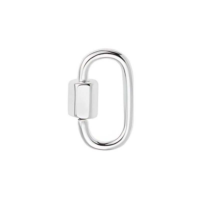 Cierre candado ovalado con rosca de 17,8mm. En latón con baño de plata.